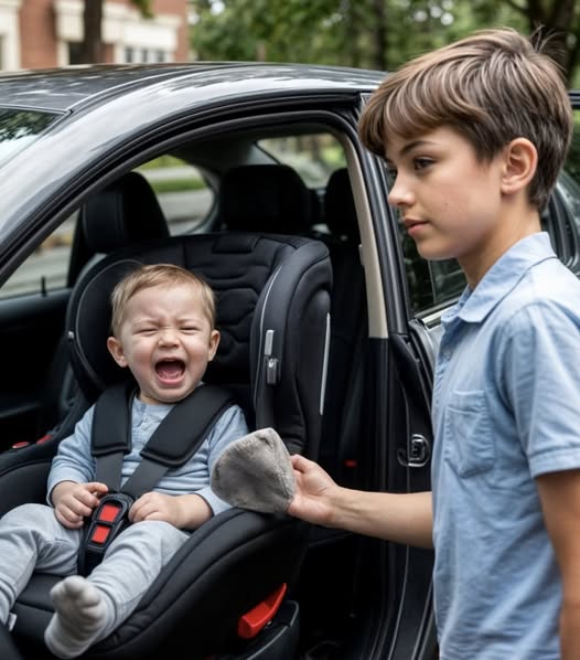 The black car pulled up in front of the hospital. The billionaire helped the boy into the back seat, carrying the triplets one by one. He sat beside them the whole ride, keeping the babies close to his chest, making sure the boy didn’t fall asleep again. They drove through the busy city streets. Tall buildings, flashing lights, crowds rushing by. But inside the car, it was quiet. Safe.