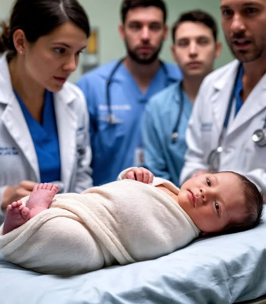 The boy was born with warm-toned skin, soft curls stuck to his forehead, and wide-open eyes that looked as if he already understood everything. He didn’t cry. He just breathed. Evenly, calmly. His small body moved confidently, and suddenly his gaze met the doctor’s eyes.