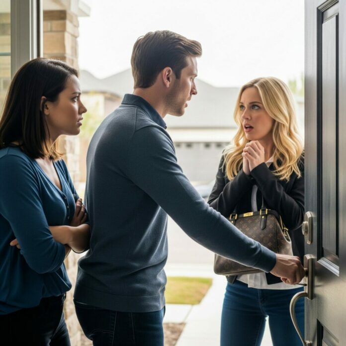 When Ethan opened the door, a blonde woman in her late twenties stood there, holding her purse tightly. Her eyes lit up—until she spotted Mia standing behind him.