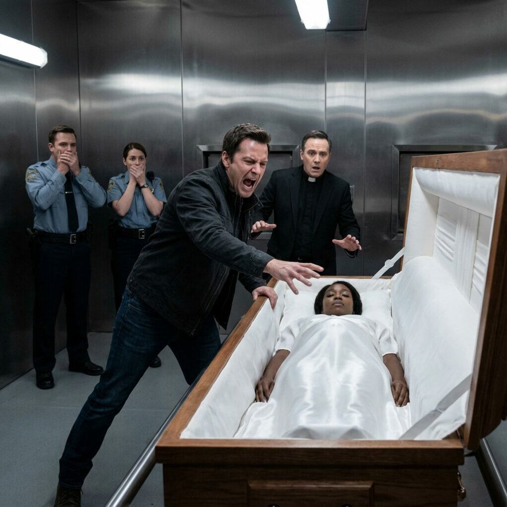 Chaos erupted inside the crematorium. The priest stepped back in alarm, and two technicians rushed to hit the emergency stop button. Michael sprinted to the casket, fumbling with the latch until it finally released. When he lifted the lid, his knees nearly buckled—Alina’s chest rose faintly, as if fighting for a single thread of life.