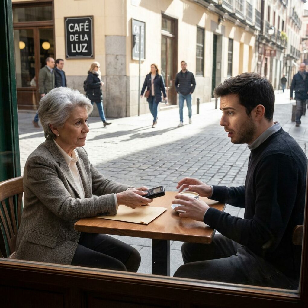 Dos semanas después, llamé a Daniel y le pedí que nos reuniéramos en una cafetería del centro. Aceptó con desgana. Llegó tarde, revisando el móvil, seguro de que iba a escuchar otra petición incómoda. Yo pedí café solo; él, un capuchino con prisa.