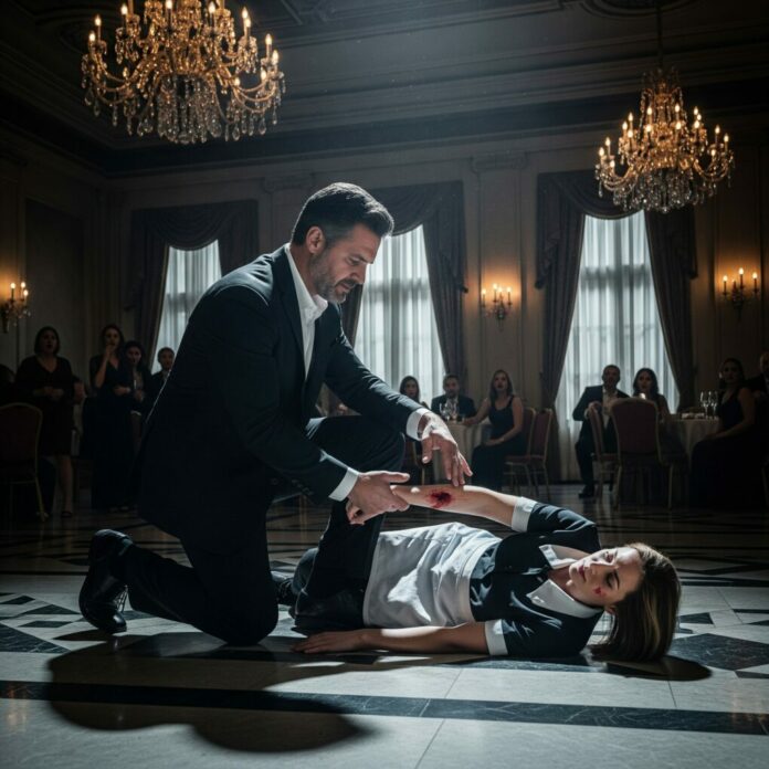 The ballroom was frozen. Hundreds of eyes watched as the most powerful man in the room helped a maid to her feet. Sophia stood at the top of the stairs, pretending to be shocked. Mrs. Sterling rushed over—not to help me, but to scold me.