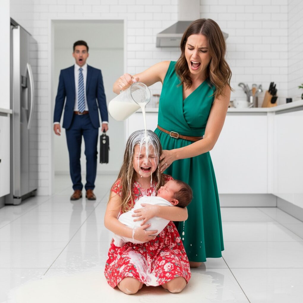 “I told you to finish breakfast,” Linda said flatly. Emily shook her head. She was lactose intolerant, something her late mother had managed carefully, but Linda dismissed it as “drama.” Before Emily could step back, Linda grabbed the carton and poured the milk straight over the child’s head. It soaked Emily’s hair, dripped down her sweater, and splashed onto the floor.