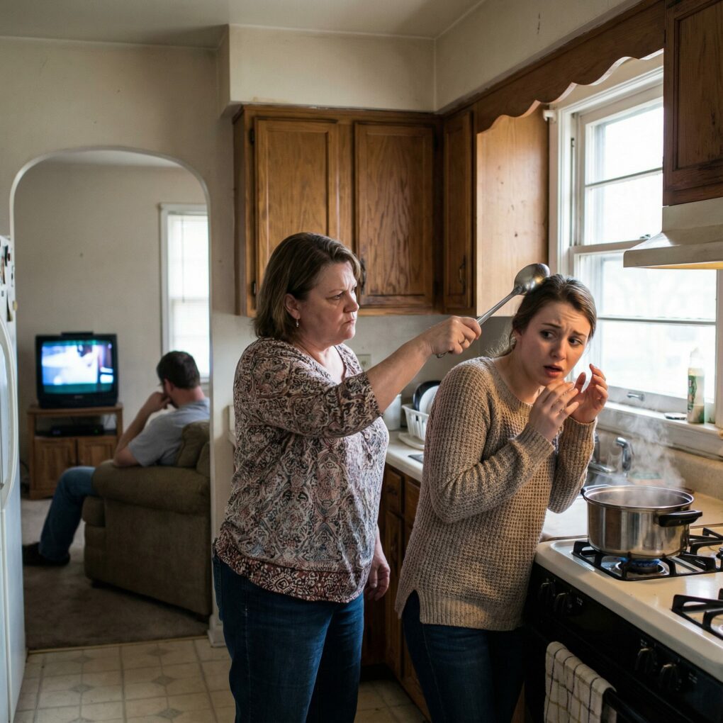 Linda stepped closer, pointing the spoon at my face. “If you can’t even cook properly, what good are you as a wife?” she snapped. My hands were shaking, but my voice surprised me with its steadiness. I told her not to touch me again. She scoffed, muttering about my “attitude,” and walked out to complain to her son.