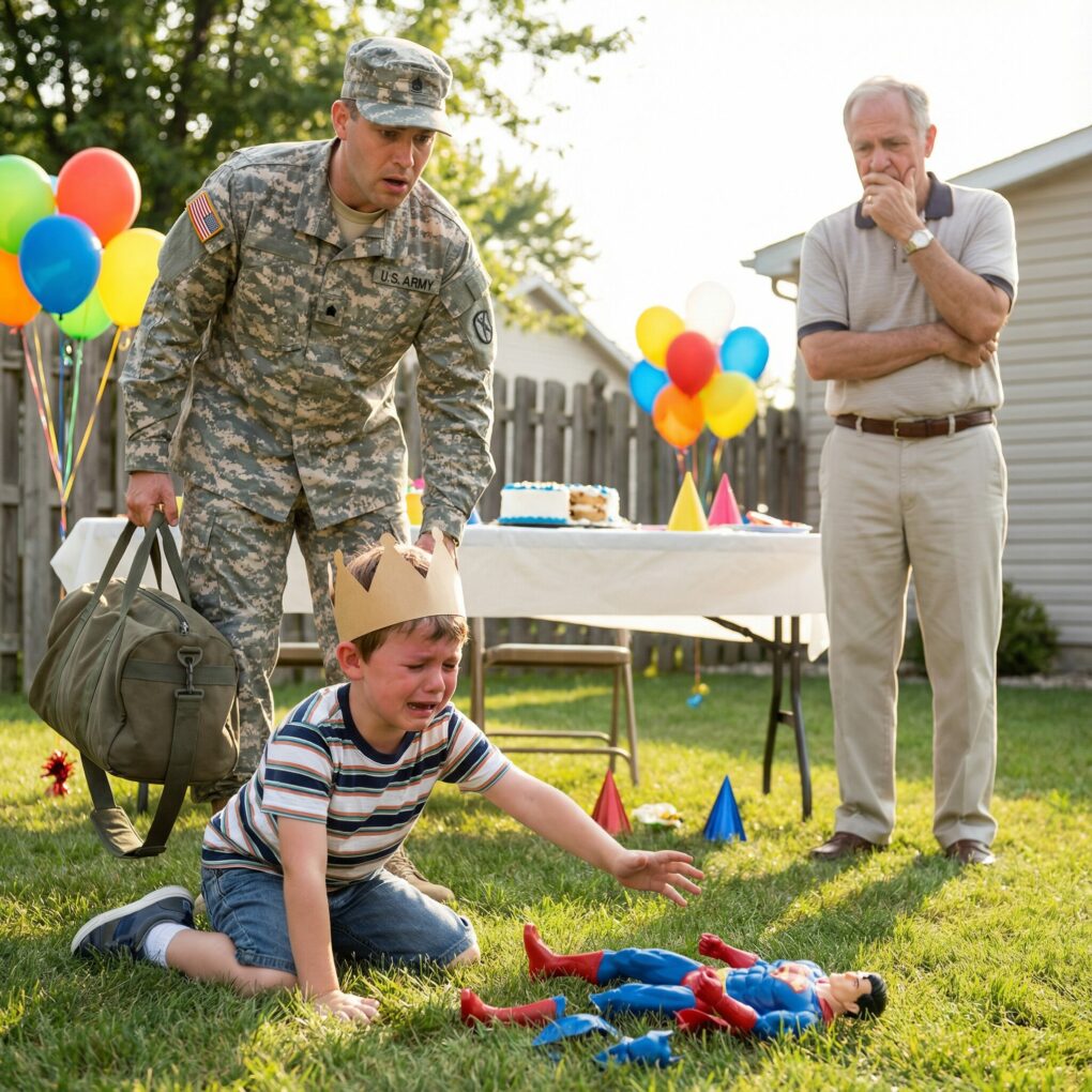 Javier apareció con el uniforme puesto y una bolsa de viaje al hombro. Se quedó inmóvil, mirando a su hijo llorar, el juguete roto y a mi padre rígido de ira. El aire se volvió pesado, como si todo estuviera a punto de cambiar de manera irreversible.