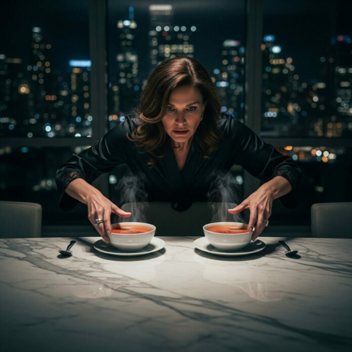 I never imagined that a simple Tuesday night in my Lincoln Park penthouse would turn into a nightmare I couldn’t escape. I was in the kitchen, staring at Marcus on the cold marble floor, his body convulsing violently. White foam poured from his mouth, his eyes wide but vacant. My heart pounded as I realized the poison he had carefully planned for me had killed him instead. Thirty minutes earlier, we had been sitting at the dining table, Marcus serving his famous tomato soup, the one recipe he had learned in college from his mother. He had been overly affectionate, telling me how lucky he was to be married to me, but I had seen the glass bottle he had pulled from his pocket. The clear liquid he poured into my bowl wasn’t water.