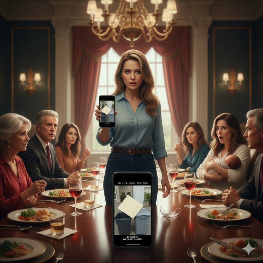 But I wasn’t the same girl she used to bully in high school. I had come prepared. I reached into my clutch and pulled out a small, folded stack of papers. I walked to the head of the table and laid them down in front of my father. They weren’t just copies of the invitations; they were something much more damning.