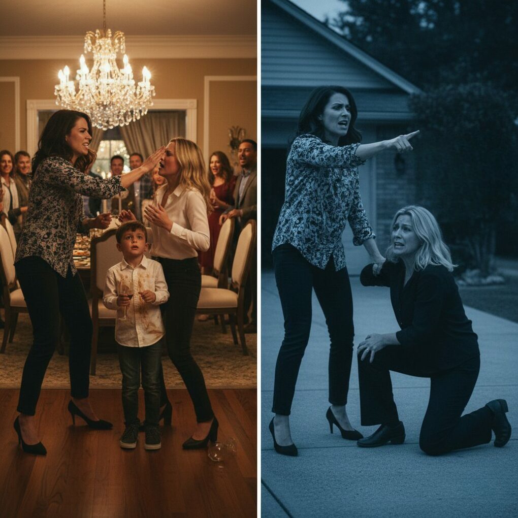 The chandelier light in my mother’s dining room felt blindingly bright, a stark contrast to the darkness swirling in my chest. I had arrived late to the family reunion, only to find my six-year-old son, Leo, hiding under the patio table. When I pulled him out, my blood ran cold. His cheek was swollen with a purplish bruise, and his favorite white shirt was ruined, drenched in greasy gravy and remnants of mashed potatoes. He wasn’t crying; he was shaking.