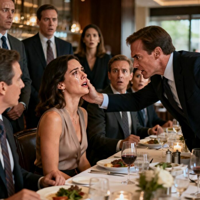 His expression darkened instantly. Without warning, he turned toward me and slapped my mouth with the back of his hand. The sound was sharp, unmistakable, and humiliating. The laughter died immediately. Every pair of eyes at the table locked onto us.
