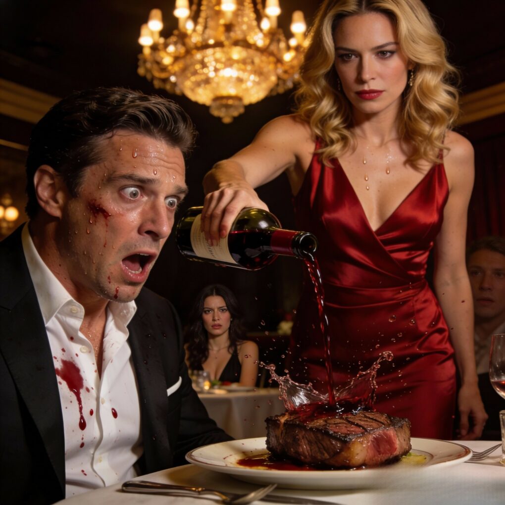 As the main course arrived, Mark leaned in, his voice dropping to that intimate register I knew so well. “I’m finishing the paperwork, Chloe,” he murmured. “Soon, there won’t be any more hiding. I’m moving the final assets out of the joint account tomorrow. She won’t suspect a thing until it’s too late.” My heart didn’t just break; it hardened into a diamond. He wasn’t just leaving me; he was planning to rob me blind while I slept in the bed we shared. I waited until they raised their glasses for a toast. I stood up, my heels clicking like a countdown on the marble floor. I walked to their table, picked up Mark’s glass of Bordeaux, and slowly poured the deep red liquid over his expensive white steak.