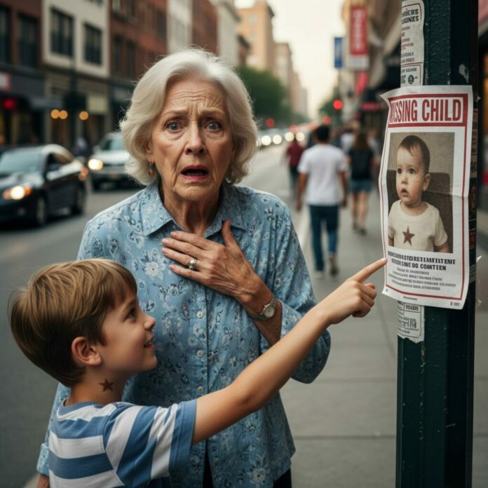 The grocery trip was supposed to be a mundane Saturday routine until my six-year-old grandson, Leo, stopped dead in his tracks near the exit. He pointed a small, trembling finger at a faded “Missing Child” poster taped to the glass. “Grandma, look,” he whispered, his eyes wide with innocent confusion. “That boy looks just like me when I was little! He even has my star-shaped birthmark on his neck.” My breath hitched as I stepped closer. The child in the photo, kidnapped twenty years ago from a town three states away, was a mirror image of Leo. The age-progression sketch underneath looked exactly like my son, Thomas. A cold shiver raced down my spine, settling in the pit of my stomach. My daughter-in-law, Sarah, had always been secretive about Leo’s birth, claiming the records were lost in a house fire before she moved to our town.