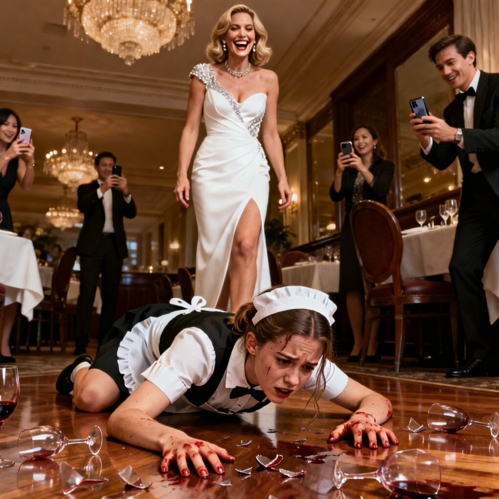The pain was instant and blinding. Glass pierced my palms, my knees, my skin. Blood mixed with spilled wine as I crawled forward, inch by inch, while phones hovered above me like weapons. The restaurant stayed silent except for Patricia and her friends laughing.