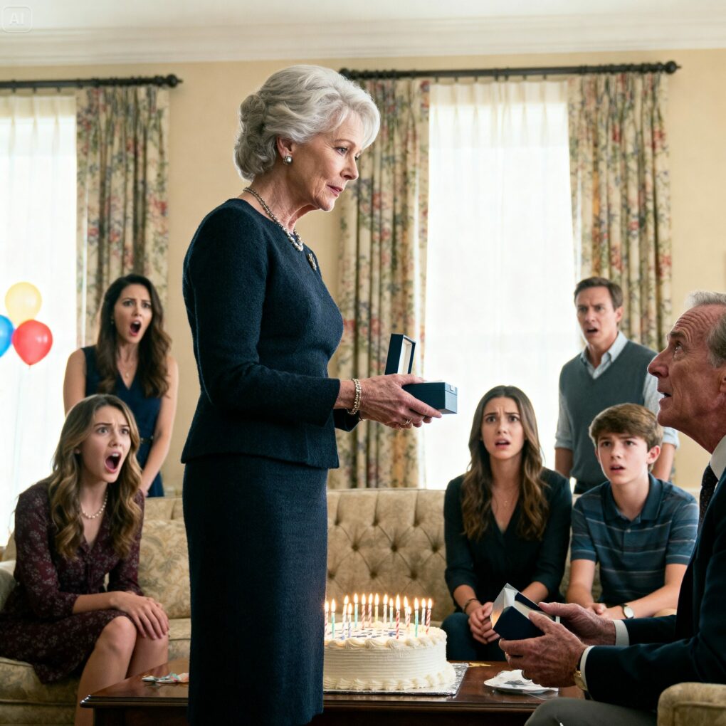 No fue una sonrisa de alegría ni de resignación. Fue una sonrisa consciente. Caminé lentamente hasta la mesa, tomé una pequeña caja envuelta con un lazo azul y regresé al centro del salón. Se la tendí a Alberto con calma.