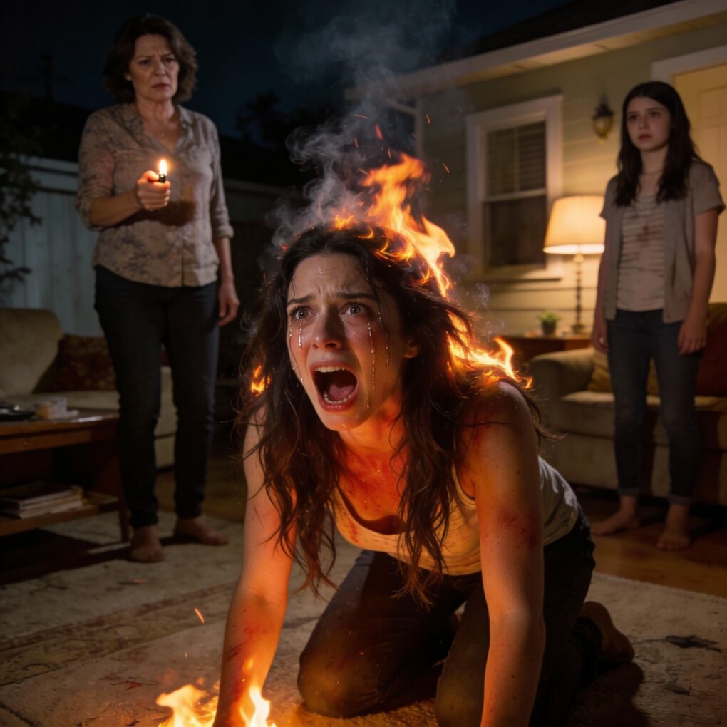 Me levanté para irme, temblando. Fue entonces cuando sentí el tirón. Carmen agarró mi cabello por detrás. Pensé que iba a golpearme, pero el olor a alcohol y el chasquido del encendedor me congelaron. En segundos, sentí el calor y el pánico. Mi cabello empezó a arder.