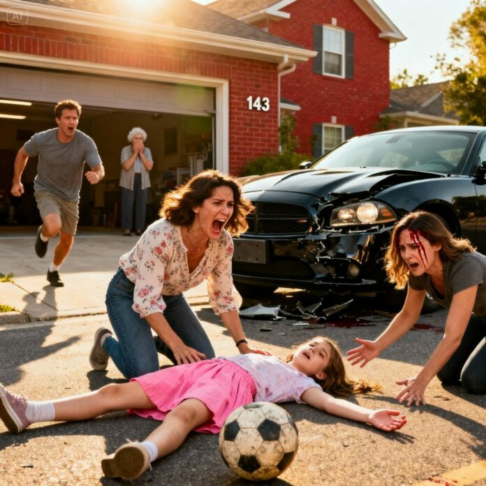 What I saw made my blood run cold. My sister, Karen, had pulled her SUV halfway into the driveway at a sharp angle. One of the garden planters was shattered under the tire. Emily lay a few feet away, motionless, her body twisted unnaturally on the ground.