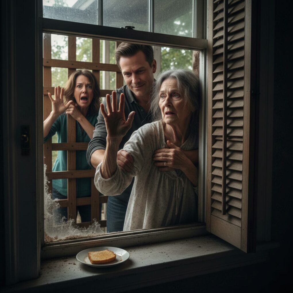 On a Tuesday afternoon, I heard her car pull into the driveway. My heart hammered against my ribs. I dragged my weakened body to the window, waving frantically. I saw Patricia’s face pale as she looked up. She didn’t go to the front door; she climbed the trellis, peering through the glass. “Margaret? Why are you locked in? Why do you look so thin?” she whispered, her voice trembling. Just then, the door behind me creaked open. David stood there, his face darkening. “Margaret, step away from the window,” he commanded. Patricia screamed, “David, what are you doing to her?” He turned to the window, his voice dripping with false sympathy, “She’s starving herself, Patricia! Her dementia has turned into paranoia! We’re doing everything we can, but she’s lost her mind!” He lunged for me, grabbing my arm so hard I felt the bone groan, and slammed the heavy shutters closed, plunging me into total darkness.