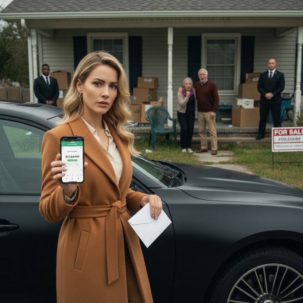 I decided it was time for a visit. I pulled up to my childhood home in a sleek, matte-black SUV that cost more than my father’s entire car collection. The lawn was overgrown, and the “For Sale” sign was already being hammered into the dirt. My parents were standing on the porch, surrounded by cardboard boxes, looking aged and broken. When I stepped out of the vehicle, my mother gasped, dropping a box of fine china. “Elena? Whose car is this? Did you… did you find a wealthy husband?” she stammered, still unable to fathom that a woman could be successful on her own. My father walked down the steps, his bravado gone, replaced by a desperate, hollow look. “Elena, thank God. There’s been a mistake with the bank. We need a loan, just a small one to get through the month. You’ve always been a good girl…”