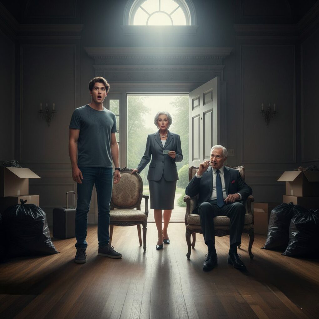 She stopped dead. My father’s face went from a heated red to a ghostly, sickly white. He dropped his suitcase, the handle clattering against the bare hardwood floor. I was standing there, arms crossed, but it wasn’t me they were looking at. It was the man sitting in the armchair next to me, calmly polishing his glasses.