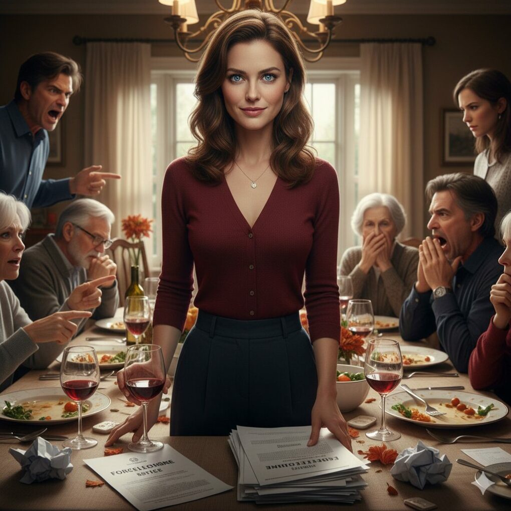 I tossed a document onto the center of the table, right on top of the cranberry sauce. It wasn’t a deed of gift. It was a notice of private foreclosure and a massive lien. “Mom and Dad didn’t just ‘choose’ to give you the house, Julian. They’re ‘signing’ it to you because they took out a massive private loan three years ago to bail out your failed tech startup in Austin—a loan they never told me about. They put this house up as collateral. The reason they are signing it over to you today is that the balloon payment is due next month, and the debt is now worth more than the house itself. They aren’t giving you an inheritance; they are handing you a three-million-dollar debt that is about to go into default.”