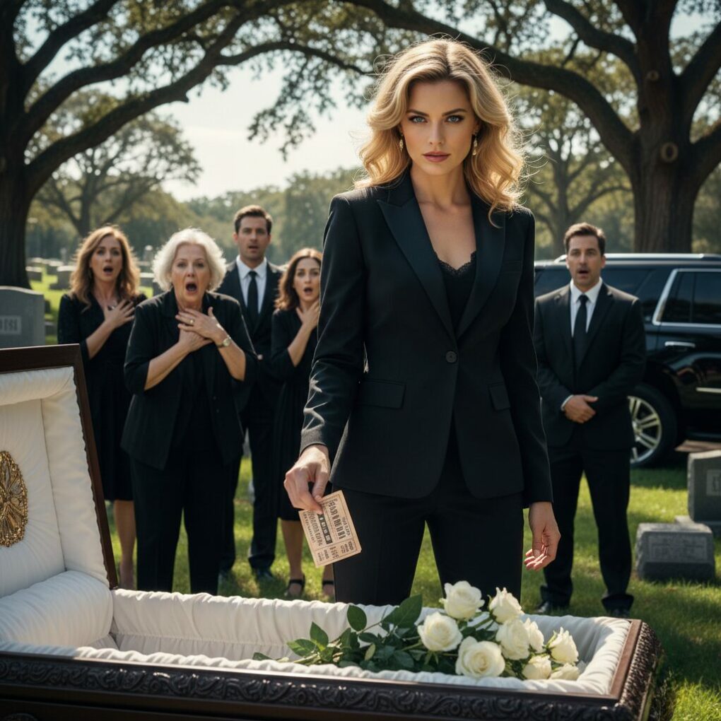 Eleanor tried to regain her composure, her eyes darting around at the shocked faces of her social circle. “Chloe, please, this isn’t the place. We were heartbroken…” I cut her off instantly. “Don’t lie. Not here. Not in front of God and all these people you’ve been deceiving. You told me I wasn’t one of you. You threw me out with nothing but the clothes on my back. I survived because I had to, not because you cared.” I reached into my coat pocket and pulled out a small, crumpled piece of paper—the original bus ticket she had given me, which I had kept as a reminder of the fire that fueled my success. I dropped it onto the lid of the empty casket. “I kept the ticket, Eleanor. It was the only thing you ever gave me that was actually worth something, because it drove me to become someone you could never control.” The tension in the air was so thick it felt like it might snap. My mother’s carefully constructed world was crumbling in real-time, her reputation dissolving with every word I spoke.