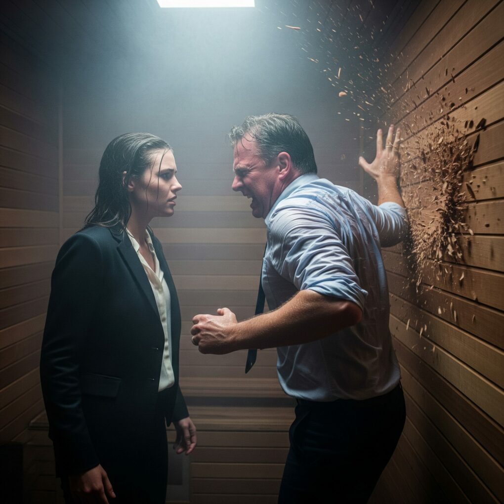 The sauna was exactly as I remembered: cedarwood walls, volcanic stones, suffocating heat. Dominic sat at the top bench like a king, trying to assert dominance. Trevor slouched in the corner, bandaged hand trembling, and Caroline hovered nervously. Phones were outside, but I had my wire sewn into my sports bra. The FBI was listening, and I was prepared.