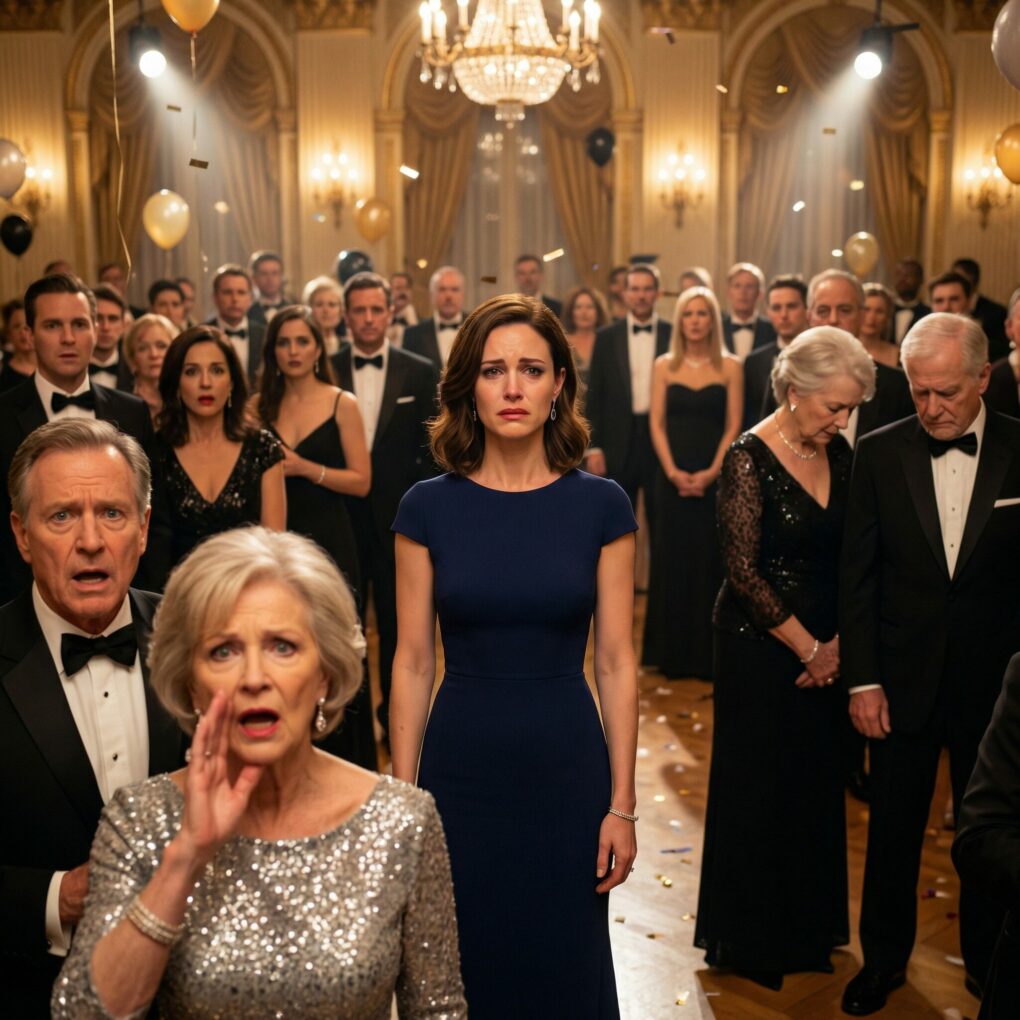 I went upstairs, sat on my bed, and stared at the navy-blue dress I’d bought weeks earlier. It wasn’t flashy. It was elegant. It was mine. I listened as guests arrived downstairs—laughter, champagne popping, the shallow cheer of people pretending everything was perfect.