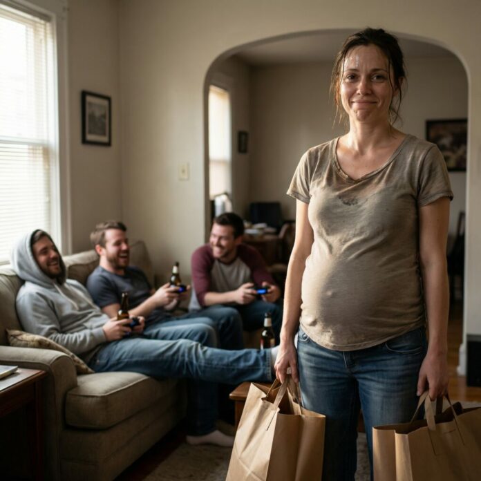 I was seven months pregnant, hauling two heavy grocery bags up three narrow flights of stairs while my husband, Mark, sat on the couch playing video games with his friends. The building had no elevator, and by the time I reached our apartment door, my hands were shaking, my back aching, sweat soaking through my shirt. I kicked the door shut behind me with my foot and stood there, breathing hard, waiting—hoping—he might at least pause the game and help.