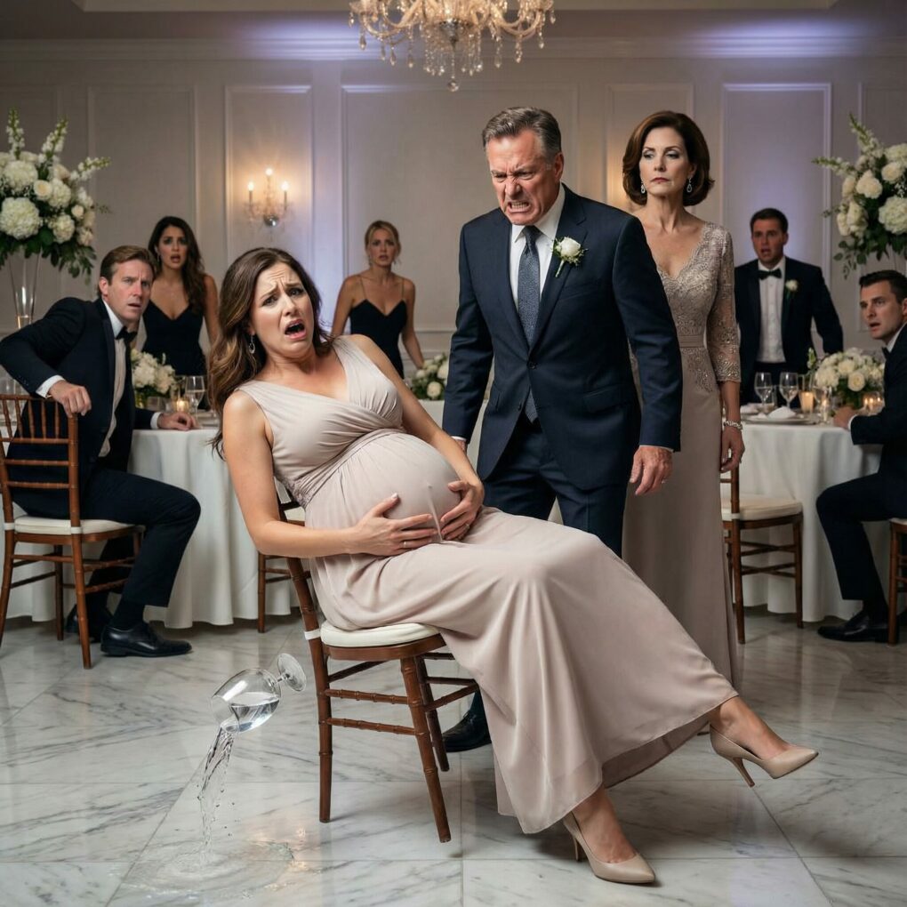 The wedding reception was loud and elegant, held in a country club outside Columbus. Crystal glasses clinked, a jazz band played softly, and I sat near the aisle because my ankles were swollen and my back throbbed constantly. My husband, Daniel, had gone to the restroom. I stayed seated, one hand on my belly, breathing through another small contraction.