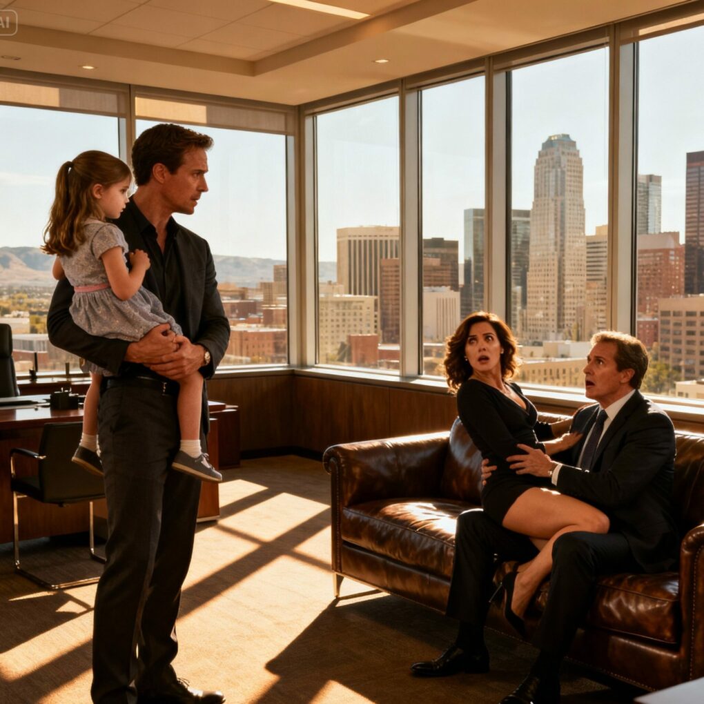 The office door was unlocked. What I saw made my blood run cold. Olivia was on her office couch, partially clothed, with Derek Hammond—the CEO, married with three children—entwined with her. Time stopped. Emma made a small, confused noise. Olivia and Derek scrambled, trying to cover themselves.