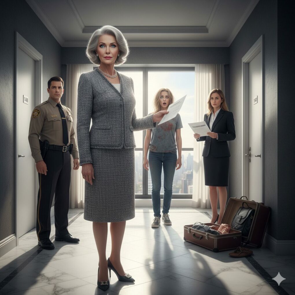 By 7:00 AM the next morning, I was standing in front of Chloe’s door, accompanied by a sheriff and my lawyer. Chloe opened the door, her hair a mess, dark circles under her eyes from a sleepless night of “ceiling thumping.” Her face turned a ghostly shade of white when she saw me standing there, dressed in a $5,000 Chanel suit.
