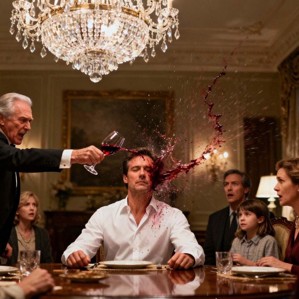 The crystal wine glass shattered against the hardwood floor, red liquid spreading across the oak like a fresh wound. But that wasn’t the real damage. The wine had been in my face three seconds earlier, dripping from my hair, burning my eyes, soaking my crisp white dress shirt. My wife’s father, Richard Montgomery, stood at the head of the dining table, empty glass in hand, eyes filled with pure contempt. My wife’s younger sister, Jessica, was laughing so hard she gripped the table edge to keep from falling.