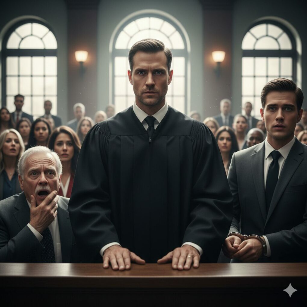 The trial was a systematic dismantling of the Miller ego. Hour after hour, evidence was presented that showed Julian’s utter incompetence and greed. He hadn’t just made a mistake; he had deliberately stepped on others to maintain the illusion of the “perfect son.” From the bench, I watched my father’s posture crumble. He kept trying to catch my eye, his lips moving as if to mouth the word “son,” but I remained a statue of justice. Every time he looked at me, I saw the night of the gala. I saw the rain on the sidewalk when I was kicked out. I felt the hunger of my first year in law school. During a recess, my father cornered me in the hallway, shielded from the cameras. “Liam,” he hissed, his voice cracking. “You have to help him. He’s your brother. Everything I did… I did it to make you stronger. Please, use your power to save this family.” I looked him dead in the eye, feeling nothing but a distant pity. “You told me I wasn’t your son, Richard. And a Judge has no family in the courtroom. You wanted a legacy? Well, this is it.”