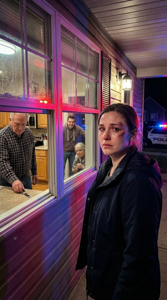 My feet moved before my brain caught up. On the porch, cold air hit my lungs and I realized I was shaking. Behind the glass, Dad’s posture stayed relaxed—hands loose, shoulders open—like he was about to have a friendly conversation.