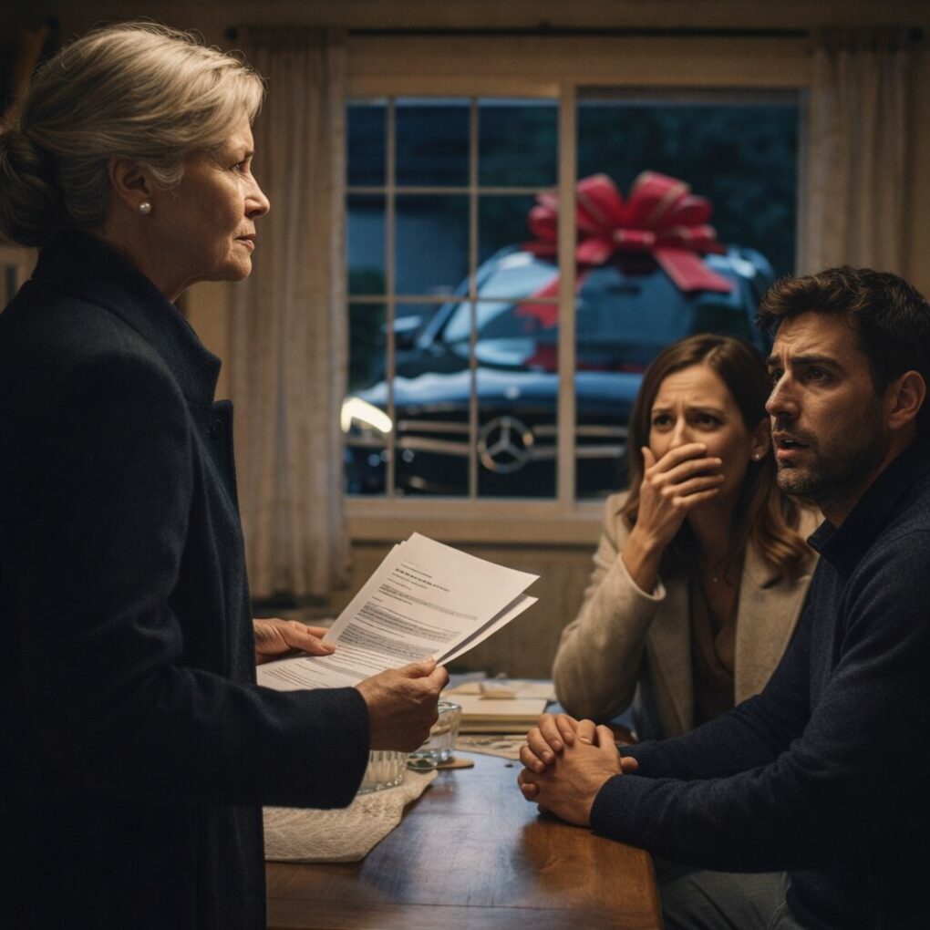 Después del postre, Daniel dijo con entusiasmo: “Tenemos un regalo especial”. Salimos al garaje. Allí estaba: un Mercedes negro con un enorme lazo rojo sobre el capó. Laura se llevó las manos a la boca y gritó: “¡No puede ser, es mío!”. Daniel la abrazó, orgulloso. Yo sonreí, como se supone que hacen las madres.