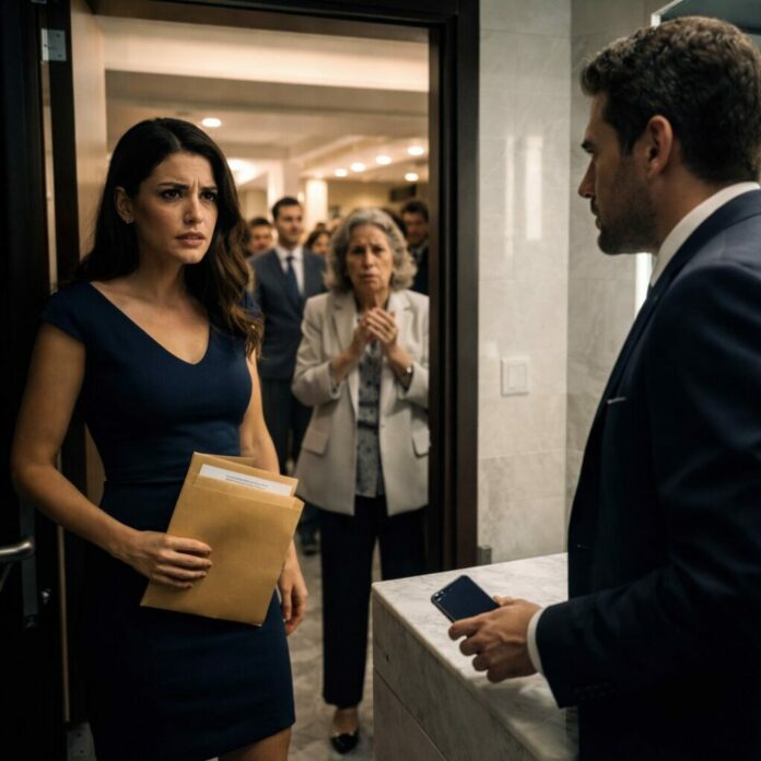 Me quedé inmóvil con el sobre en la mano. Los golpes de Javier retumbaban como un metrónomo de amenaza. Isabel me miró y negó con la cabeza, indicando silencio. Guardó el contrato en su bolso y me pasó una tarjeta arrugada. “Si sales ahora, él controlará el relato”, murmuró. “Necesitas ver lo que yo vi”. La puerta volvió a vibrar. “¡No hagas el numerito!”, insistió Javier.