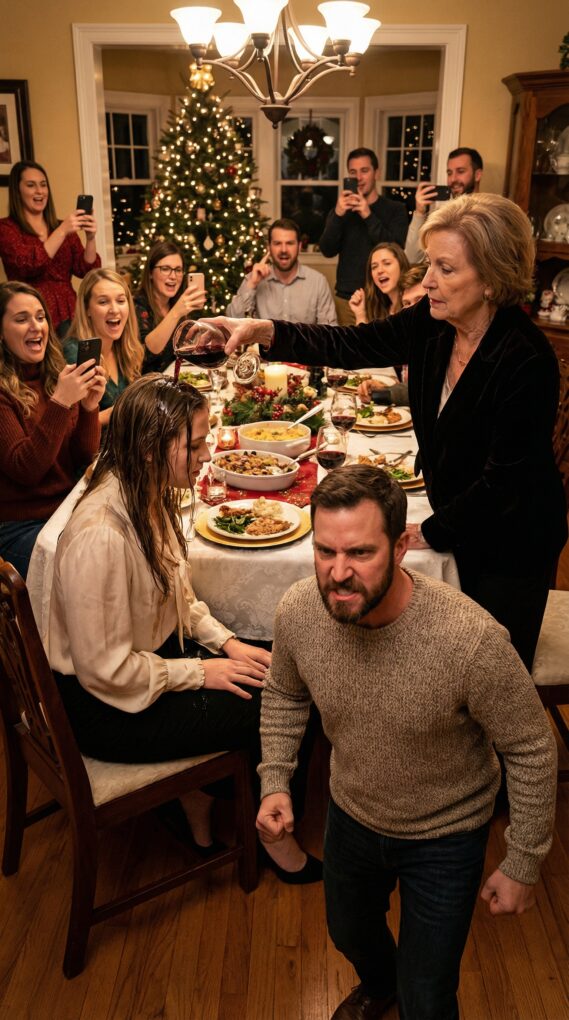 Then Diane stood, took her red wine, and poured it over Emily’s hair, slow and deliberate. The room erupted. Someone whistled. Someone shouted, “No way!”