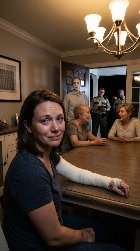 I sat at the family table with my arm in a cast, swallowing pain instead of dinner. The roast smelled amazing, but lifting a fork felt like dragging concrete. Ryan’s hand rested on the back of my chair—too possessive to be comforting—like a reminder that I was “behaving” tonight.