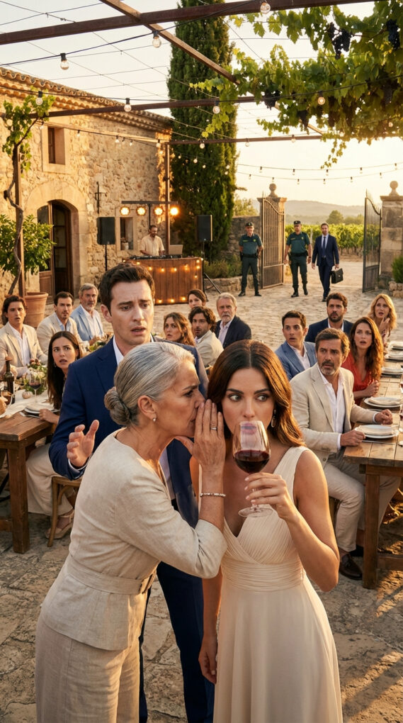 Lucía parpadeó, confundida. Javier se acercó, alarmado. Yo saqué el móvil, marqué un número y dije con calma: “Álvaro, ven ahora. Trae al notario y a seguridad. Que nadie salga”. En ese instante, el DJ bajó la música, y alguien gritó desde la entrada: “¡Carmen, hay una patrulla fuera preguntando por el viñedo!”