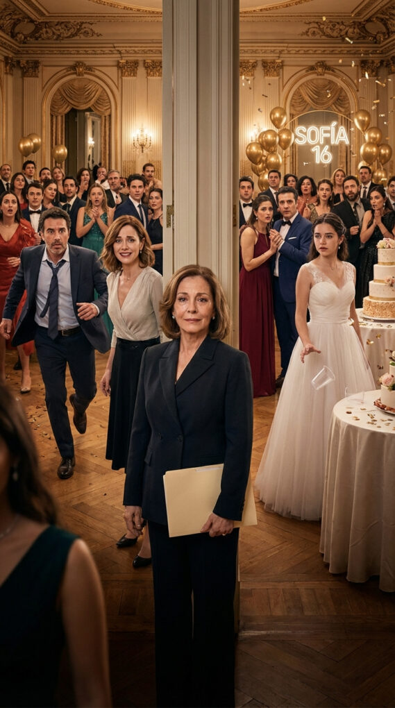 Marcos asintió: “Lucía le ha dicho a mucha gente que usted falleció hace diez años”. Mi mano tembló sobre el papel. Afuera, mi teléfono vibró con una notificación: “Hoy, 20:00, Sweet Sixteen de Sofía”. Miré la dirección del salón, pagué sin probar el café y, con la carpeta bajo el brazo, manejé hacia allí. En el estacionamiento me miré al espejo: ojos rojos, mandíbula firme. Cuando vi las luces, la alfombra y el letrero gigante “SOFÍA 16”, respiré hondo, empujé la puerta… y todos se giraron.