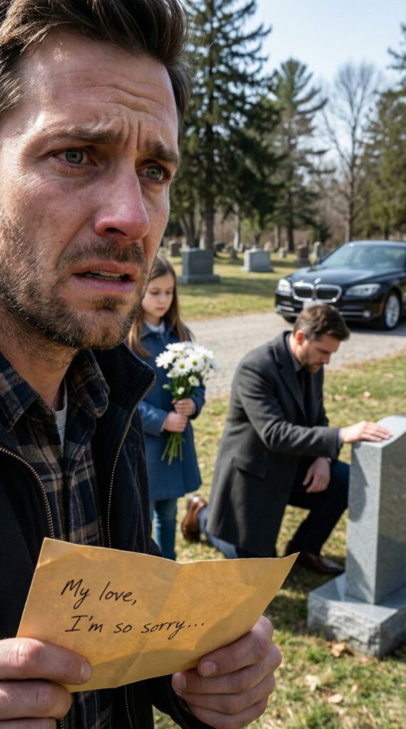 When we turned down the row, I saw a black luxury sedan parked near Rachel’s headstone. Not a family car. Not a friend’s car. Expensive enough to look out of place among muddy tires and quiet sorrow.