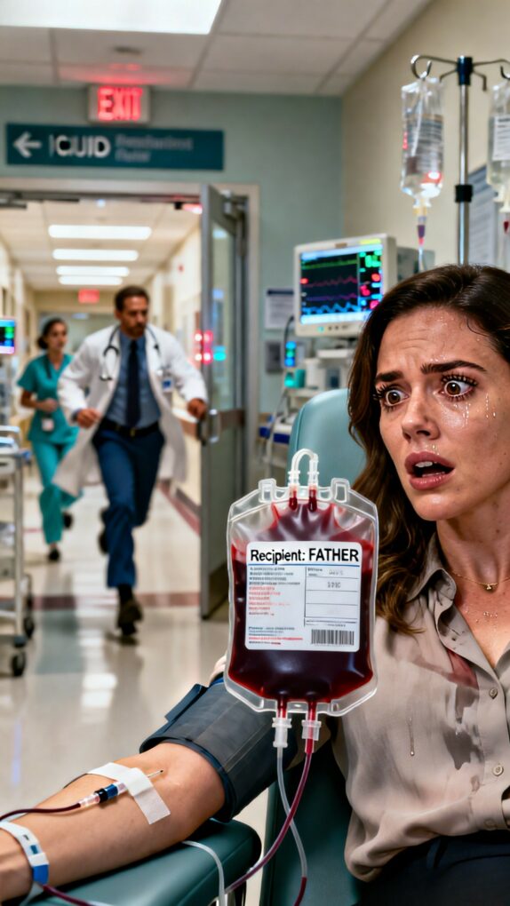 The ER was chaos—sirens, shouted instructions, Grant’s suit cut open, blood on the gurney rails. A doctor pulled me aside. “He’s losing too much,” she said. “We need blood. His type is extremely rare.”