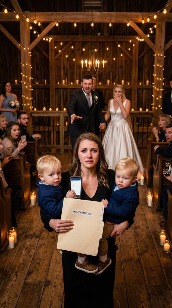 On December 14, I stood in the back of a candlelit barn turned wedding venue, my coat still dusted with snow from the parking lot. Miles and Mason were on my hips—one on each side—bundled in matching little navy jackets. They looked like tiny, serious judges.