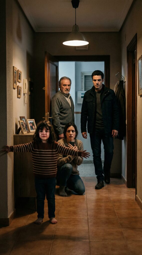 A lo lejos, en el pasillo, se oyó otro sonido: pasos rápidos, voces. Era mi padre. Entró al rellano casi corriendo, con los ojos rojos de rabia y miedo. Se arrodilló junto a Sofía primero, la abrazó, y después me miró a mí, como pidiéndome perdón por no haber llegado antes.
