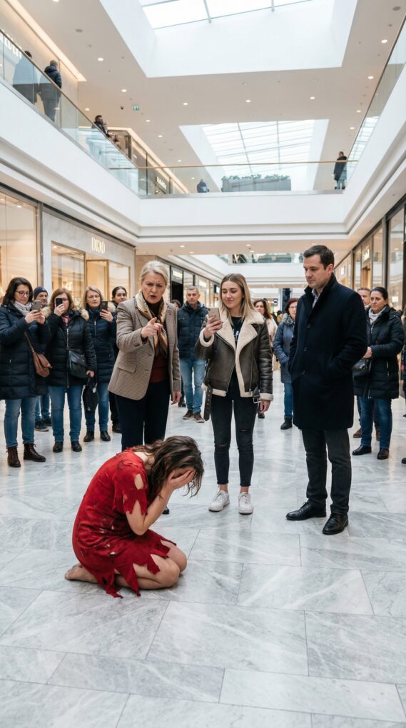 I collapsed to the floor, humiliated beyond words, as strangers filmed my worst moment. Then suddenly, the crowd parted—and two men in flawless suits walked toward me with terrifying calm.