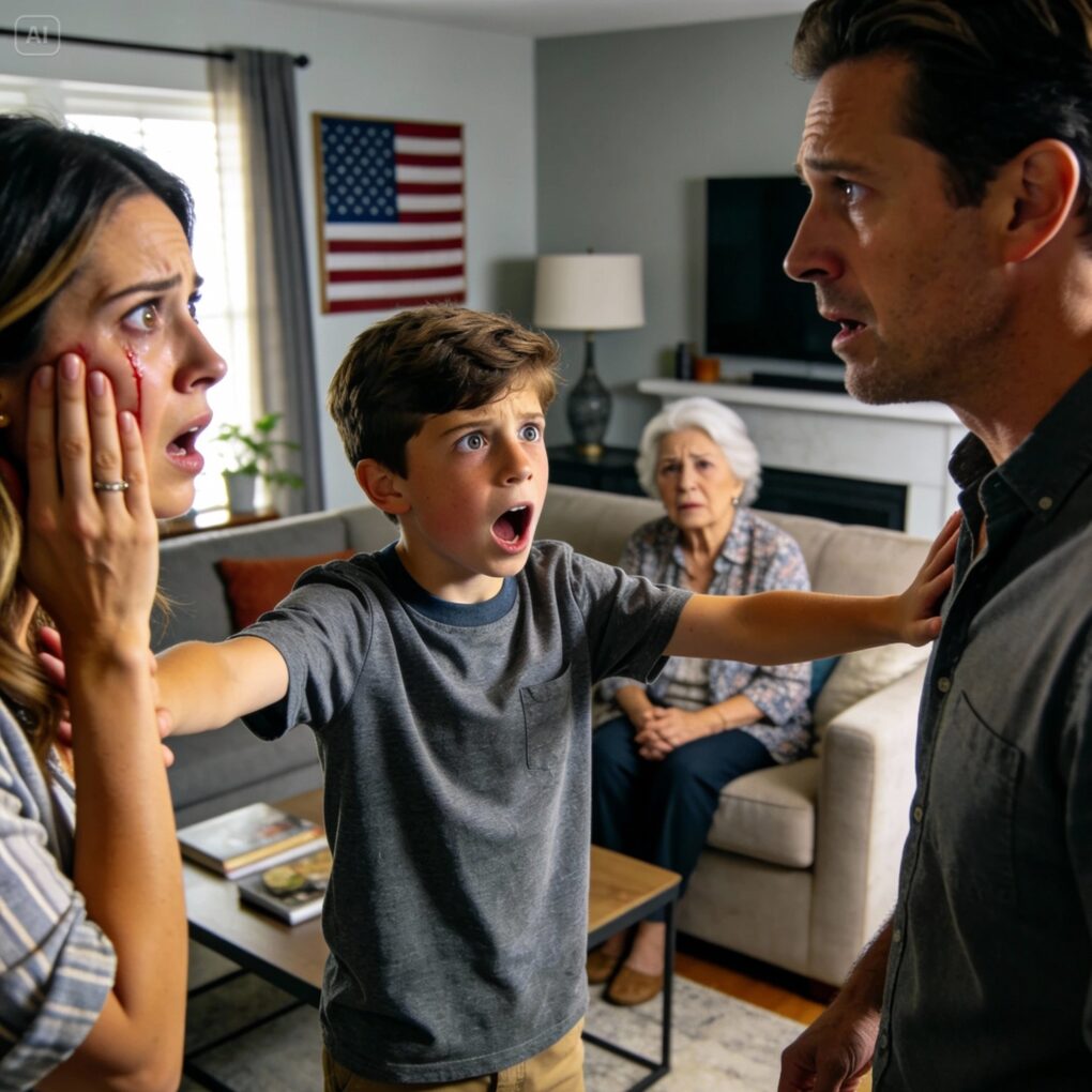 Ethan looked straight into the screen. “My mom is being hurt right now,” he said, and I heard the operator’s calm reply through the speaker. He gave our address without stumbling, like he’d rehearsed it for a school drill. “My dad slapped her and he’s grabbing her. His mother is here.”