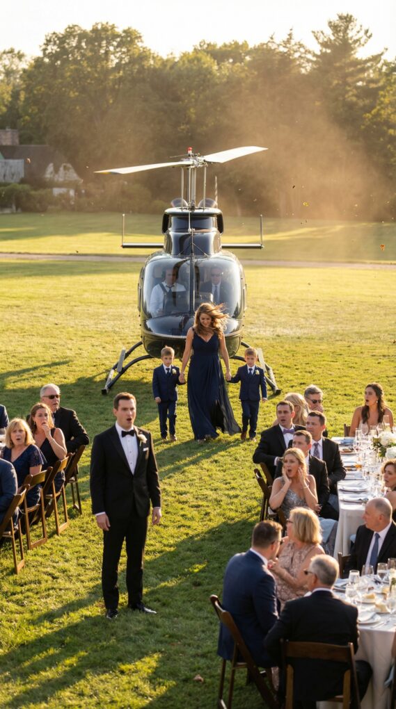 Jason stood near the front, adjusting his cufflinks, until he noticed me walking down the aisle—heels clicking, shoulders back—Noah and Miles gripping my hands.