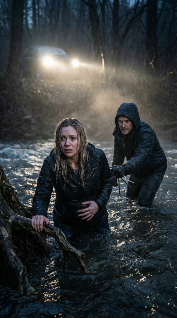 I clutched my eight-month belly as icy water bit into my skin and the current yanked at my legs. Behind me, mud splashed—then his ragged breath. “Stop!” He was close. I spun, my heart hammering. “What do you want from me?” I shouted, shaking.