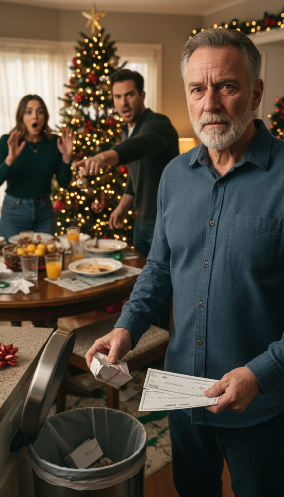 I didn’t answer immediately. I walked to the kitchen, opened the trash lid, and looked down at the small red package sitting among coffee grounds and napkins.