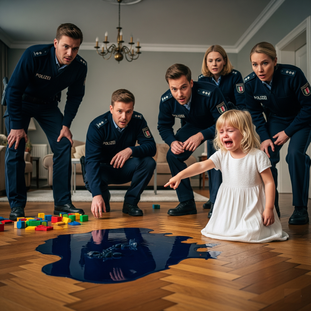 They rounded the corner and saw her—curled up in a ball on the hardwood floor, blonde hair messy, face streaked with tears. She couldn’t have been older than four. Her white dress was smeared with something that looked like mud—or was it something else?