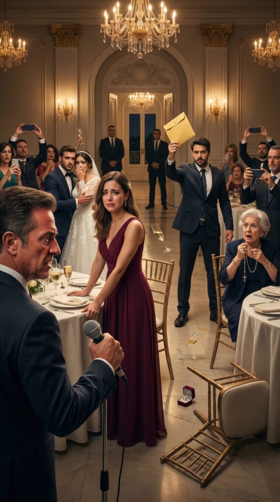 Sentí que el corazón me golpeaba las costillas. Lucía se levantó también, temblando. Y cuando Diego sacó del bolsillo un sobre amarillo y lo alzó como si fuera una sentencia, el salón entero quedó mudo.